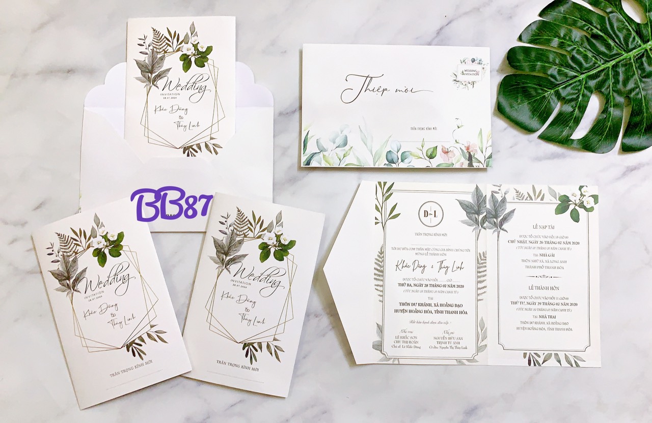 - Thành phần thiệp: 1 Phong Bì + 1 thiệp gập 2