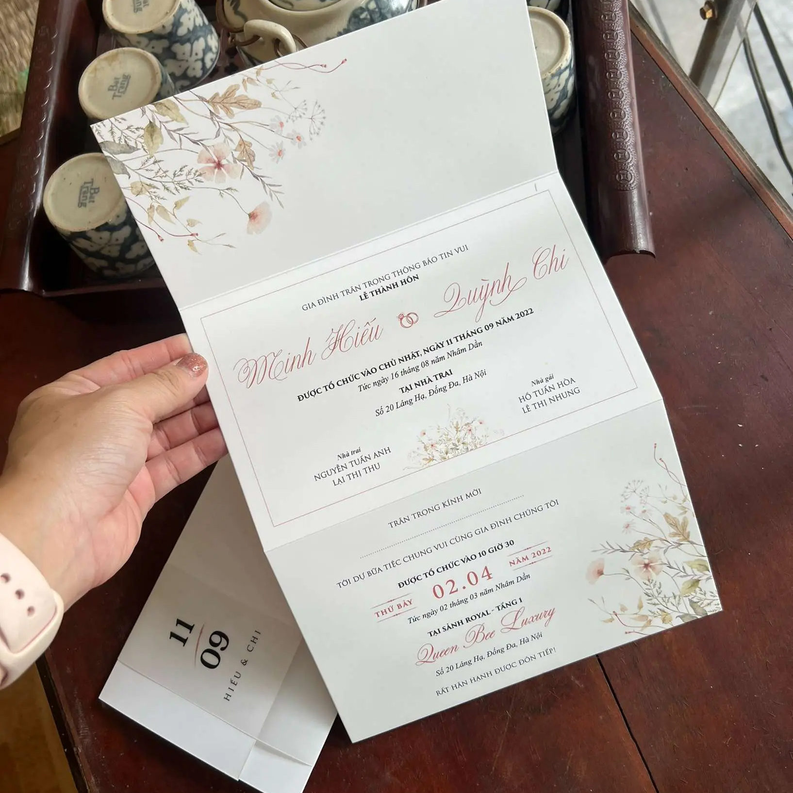 - Kích thước mặt thiệp hoàn thiện: 120 X190 mm (+-)