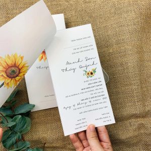 - Thông số kỹ thuật: Giấy Ivory hoặc Offset định lượng 200 – 250gsm
