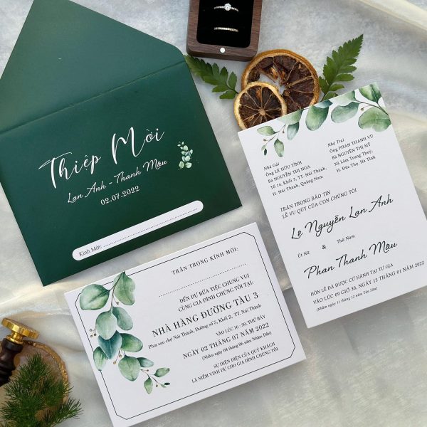 - Thành phần thiệp: Phong bì + 1 thiệp in 2 mặt